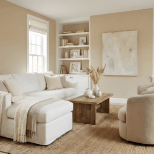 Un neutro sofisticado que reemplaza al gris frío, aportando equilibrio y calidez. Combina perfectamente con madera, textiles naturales y colores más intensos, creando ambientes acogedores y elegantes.